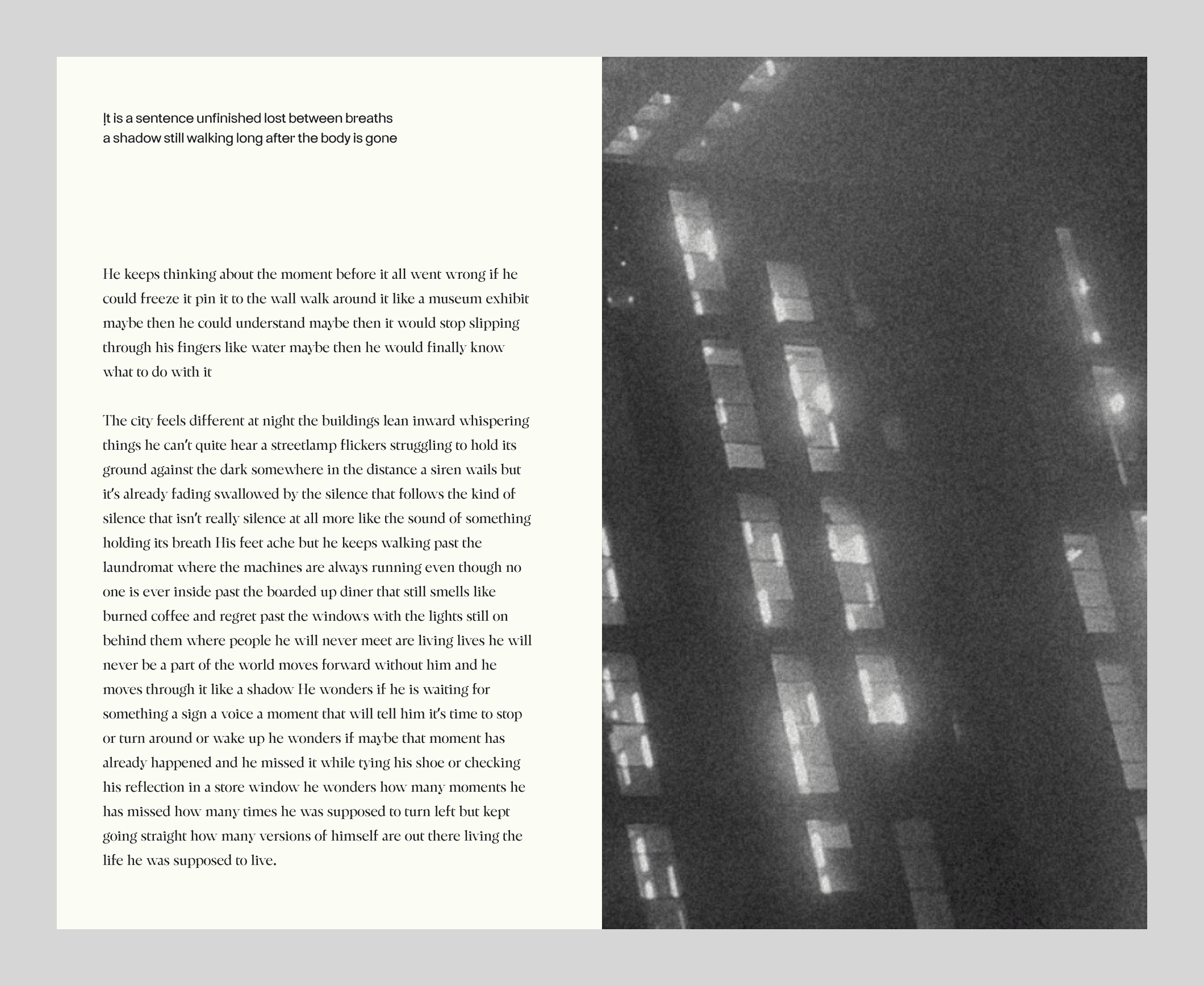It doesn’t wait to be read, it shapes how reading happens. Structure becomes rhythm. Form becomes thought.